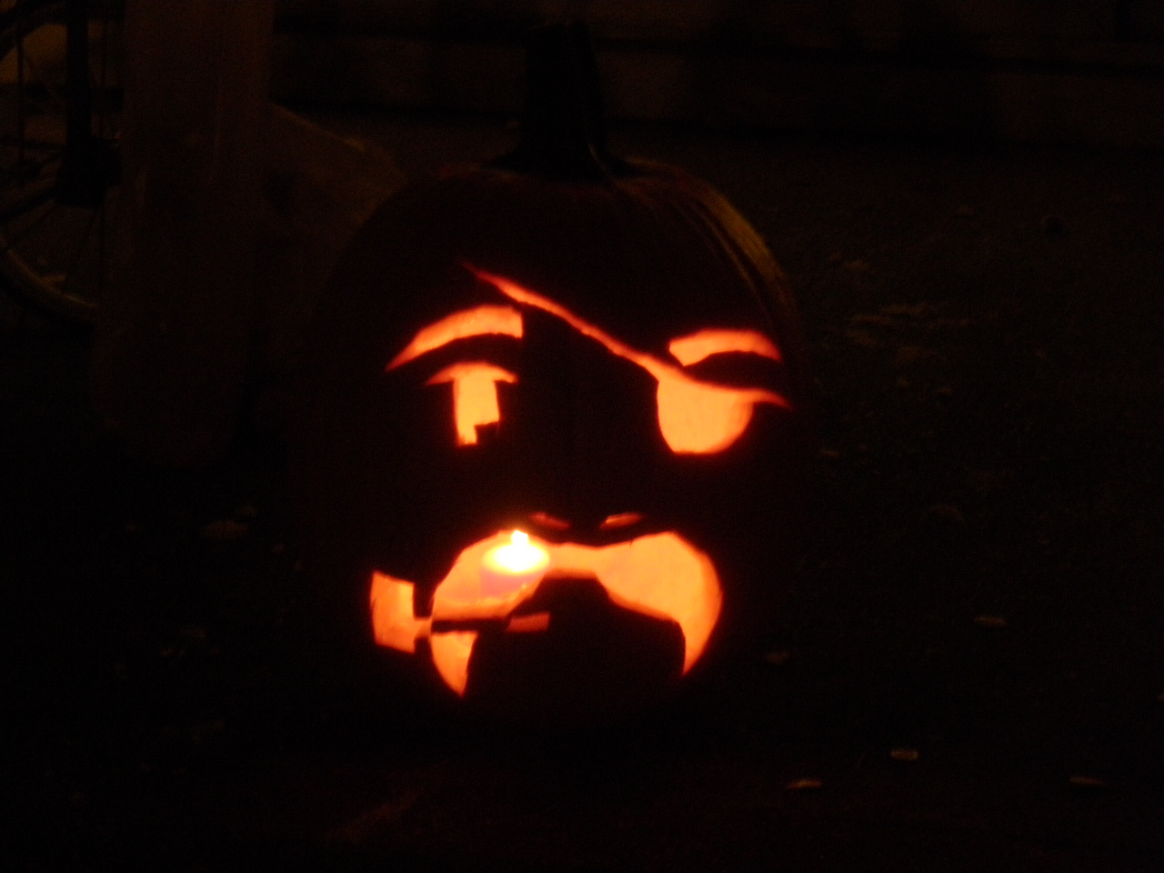 - Carve a pumpkin. DONE. I did Colonel Squashbuttle, the mister did a Drunkin and my roommate made an awesome flamey-faced one.