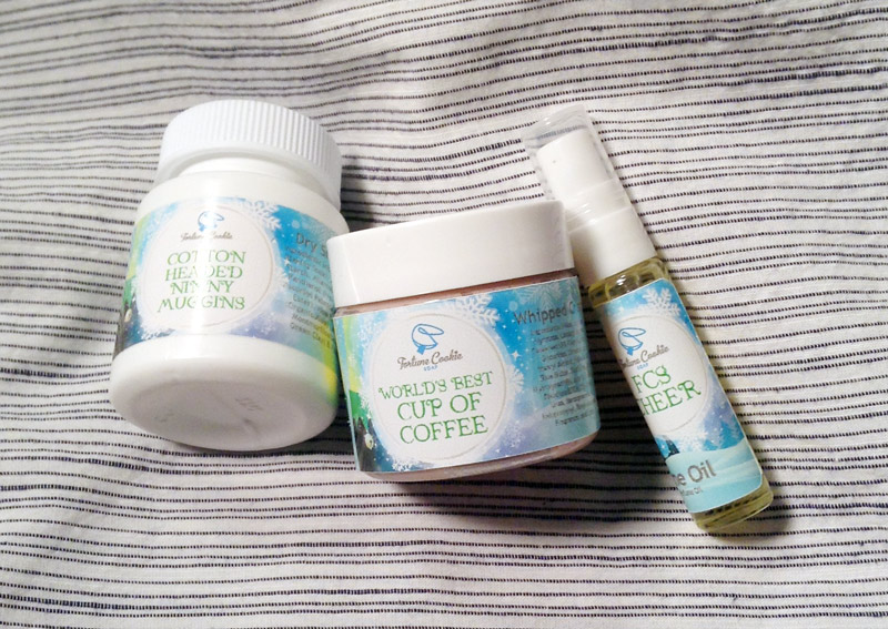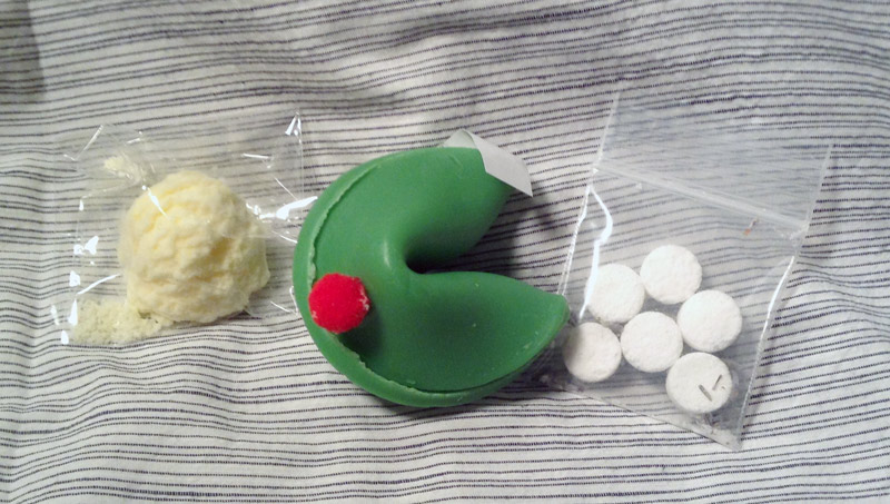 Fortune Cookie Soap in Buddy – This was the first thing I smelled on opening the box. I don’t LOVE this scent, as there’s this sharp, almost stringent note that totally overwhelms the other scents. Still, this is the absolute cutest thing with the little red pom pon. My fortune: “What’s your favorite color?”