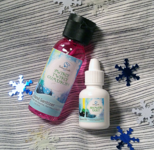 OCD Hand Sanitizer in Swirly Twirly Gumdrops – This was definitely a sugary scent. I catch the currants, cranberry and cotton candy notes. It’s not overwhelming as a hand sanitizer, so I think I’ll use it this holiday season.