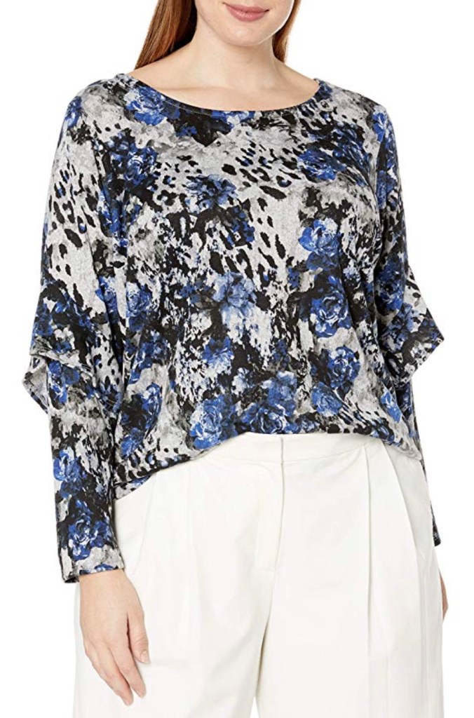 Okay, before you say anything… I don’t understand the sleeves, either, but I thought I’d try it. Maybe it would be more edgy or romantic than the photo showed. Um… that was wishful thinking. It’s actually MORE awkward than pictured. And I need you to understand that this would’ve been a perfectly fine top if the sleeves were either plain long OR the belled 3/4 length. The material is that textured sweater-type knit and the pattern is a bit less obnoxious IRL. My boyfriend wandered by and said it looked cool, but I couldn’t get past the strange sleeves.